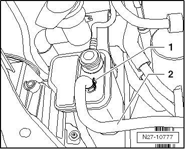 - Loosen the clamp - 1 - and pull the hose - 2 - off the EVAP canister.