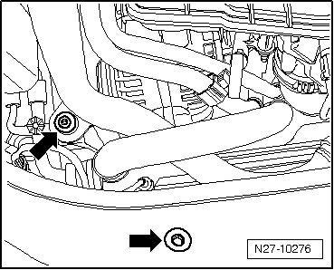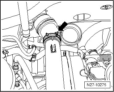 - Loosen spring clamp - arrow - using (VAS 5024 A).