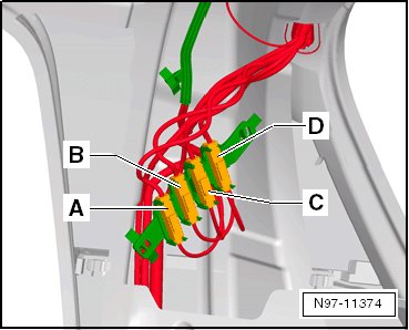 A - single pin connector -T1e- / 4-pin connector -T4br- black(Release button in rear lid handle -E234- )