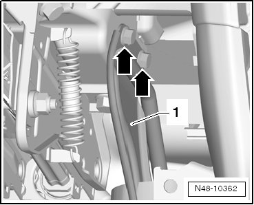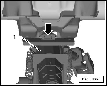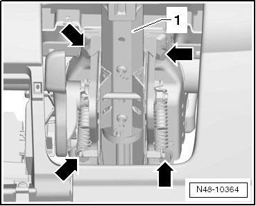 - Lower the steering column - 1 - and carefully remove it from the guide - arrow -.