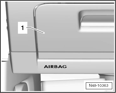 - Remove the bolts - arrows - from the knee airbag mount - 1 - on the right side.