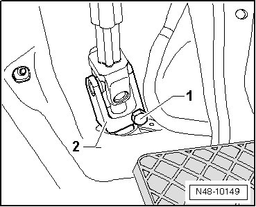 - Remove the bolt - 1 - and pull off universal joint - 2 - from steering gear.