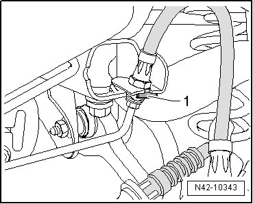 - Remove the hose retainer - 1 - on both sides of the vehicle.