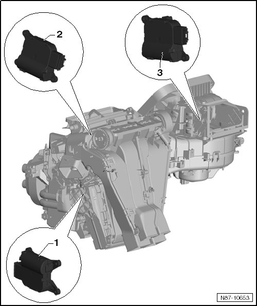 • Removing and installing, refer to => [ Temperature Regulator Door Motor (V68) ] Temperature Regulator Door Motor (V68).