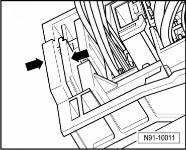 - Press together the connector lock in direction of - arrows -.