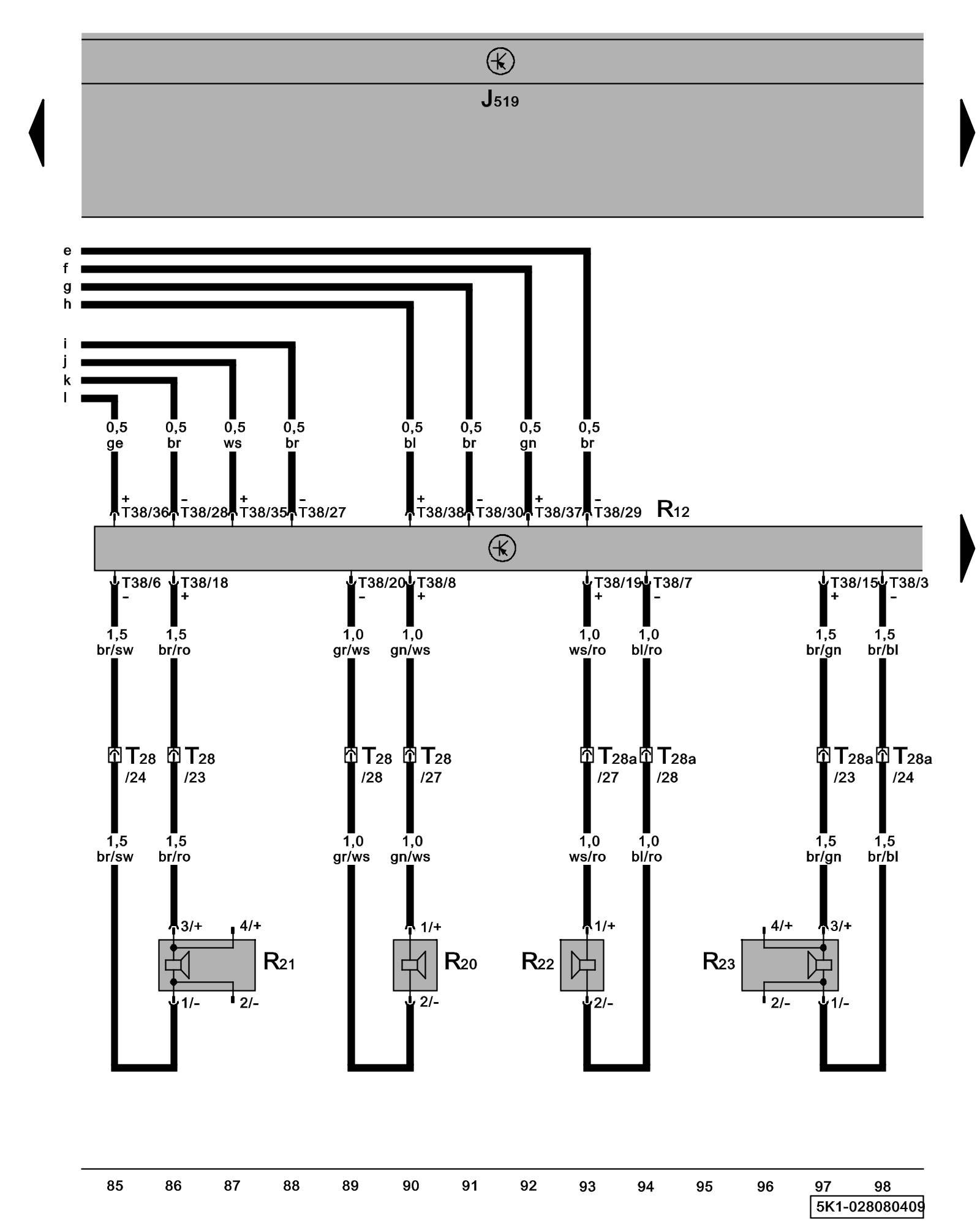 T28a - 28-Pin Connector, connector station A-pillar, right Overview of connector stations and connectors