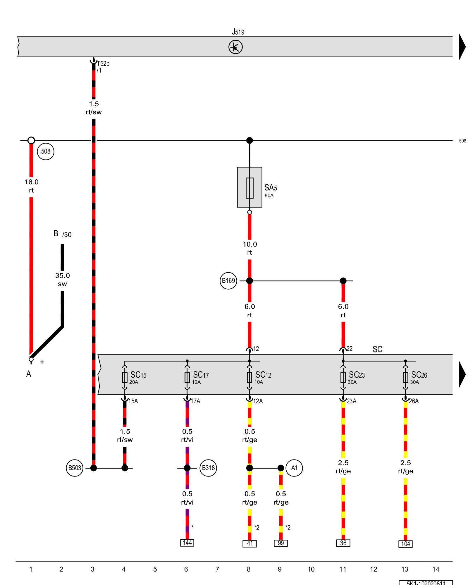SA5 - Fuse 5 (on fuse panel A) Fuse overview (SA), (SB), (SC)