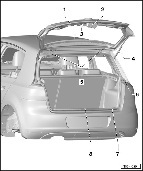 • Removing and installing, refer to => [ Rear Lid Hinge ] Rear Lid Hinge.