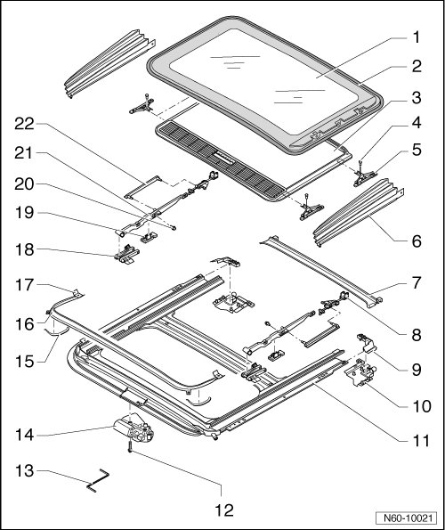 14 - Power Sunroof Control Module -J245- and Sunroof Motor -V1- => [ Sunroof Module ] See Image Below.