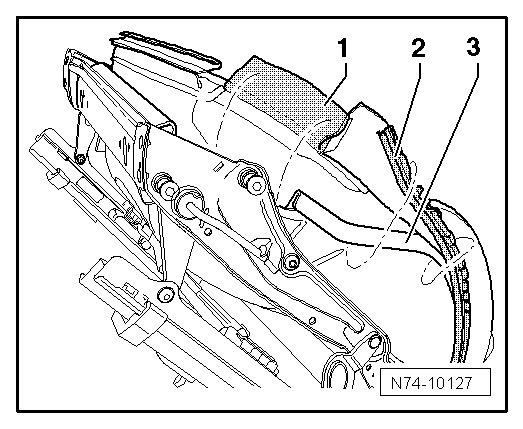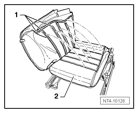 - Remove front bucket seat backrest. Refer to => [ Front bucket seat backrest, removing and installing ] Front bucket seat backrest, removing and installing