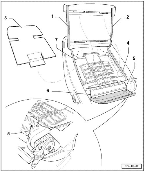 - Remove the cover - 5 - and cushion - 6 - from the backrest frame - 6 -.