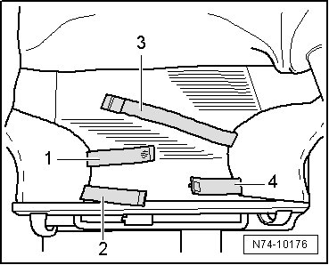 - Disengage tension wire - 4 - on both sides from upholstery wire - 3 -.