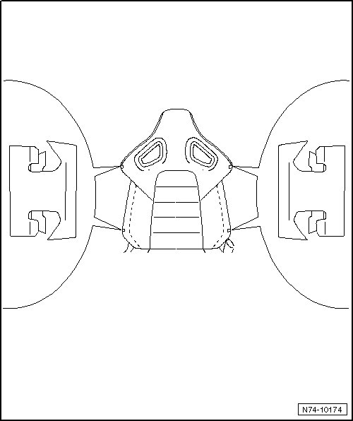 - Remove front bucket seat backrest. Refer to => [ Front bucket seat backrest, removing and installing ] Front bucket seat backrest, removing and installing