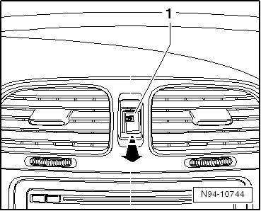 - Pull the emergency lamp switch - 1 - in - direction of arrow - out of the instrument panel.