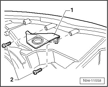 - Position the new headlamp mounting tab - 1 - on the socket on the headlamp and tighten the screws - 2 - to 1.0 Nm.