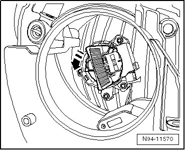 - Remove lamp socket with low beam headlamp bulb in - direction of arrow - and remove it from headlamp.