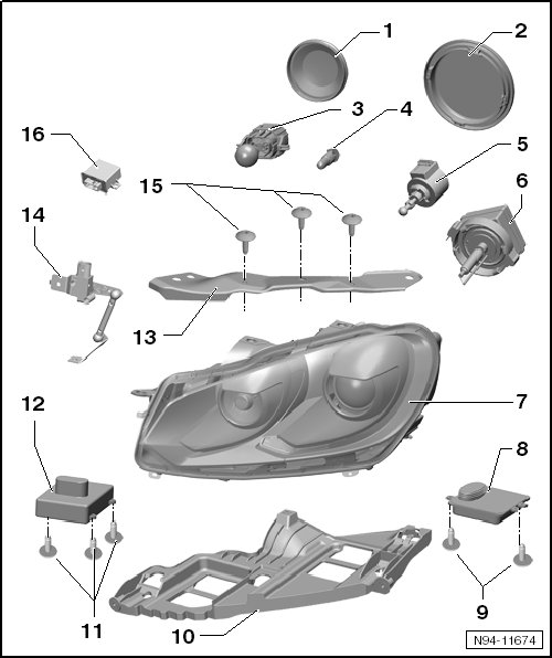 Removing and installing, refer to => [ Headlamps ] Headlamps.