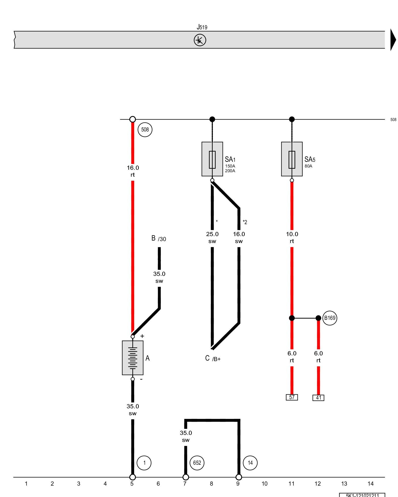(B169) - Positive connection 1 (30) (in interior wiring harness)