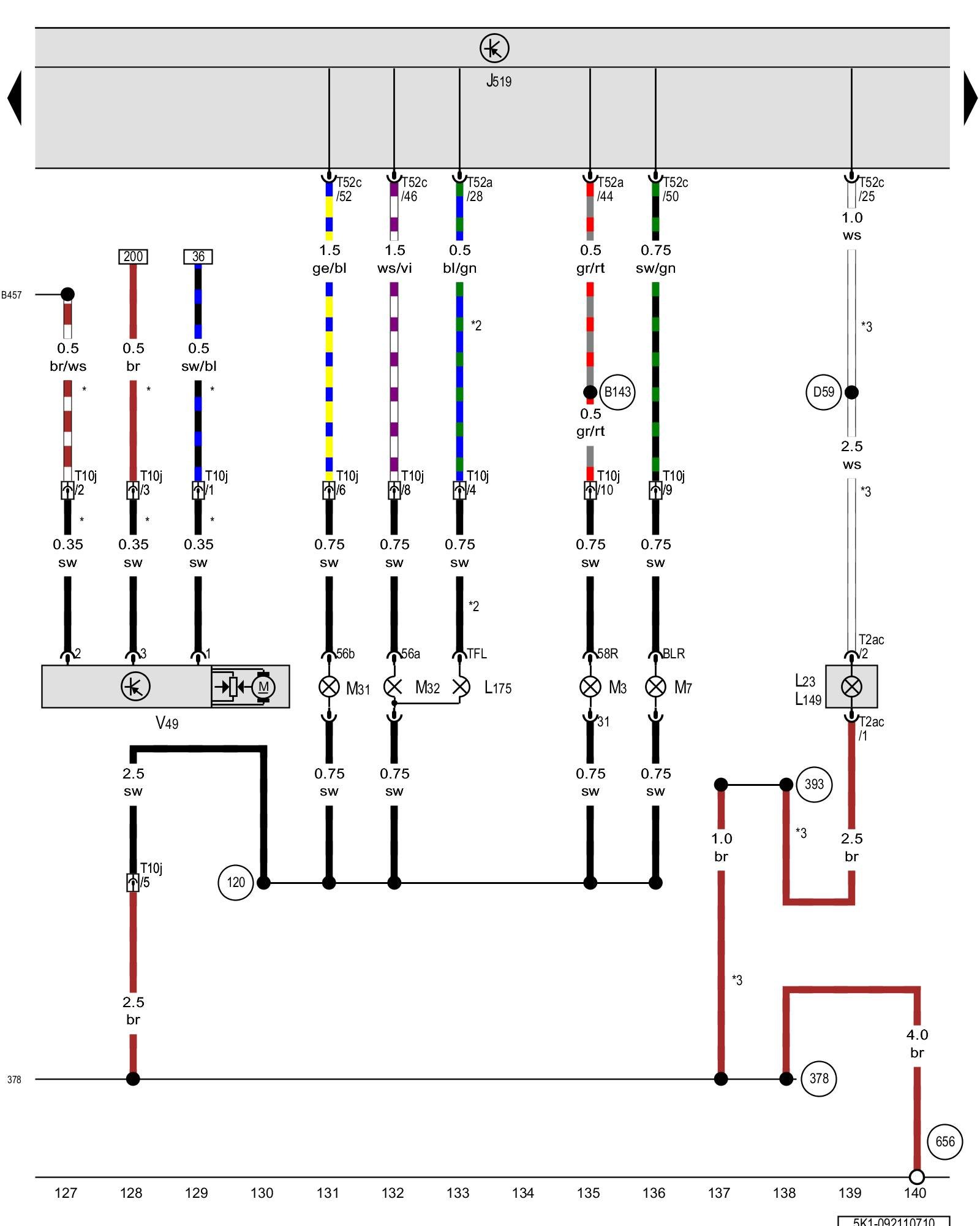(B143) - Positive connection (58R) (in interior wiring harness)