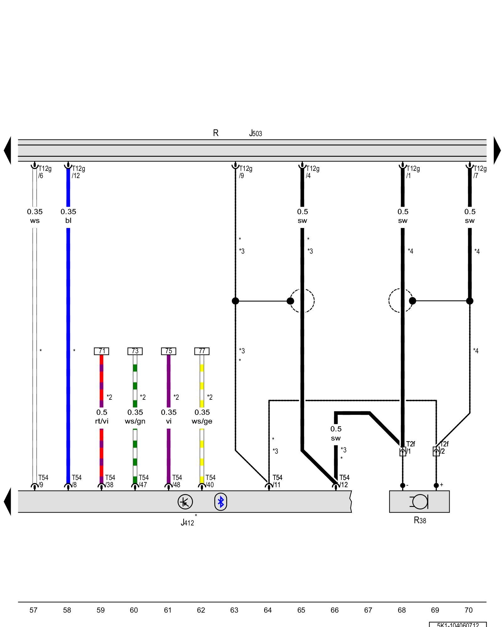 T2f - Double connector, near the front interior lamp Overview of connector stations and connectors