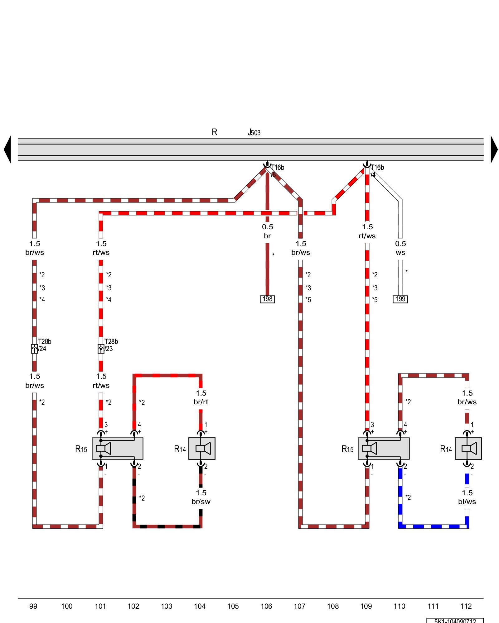Radio/navigation display unit control module, Radio, Left rear treble speaker, Left rear bass speaker