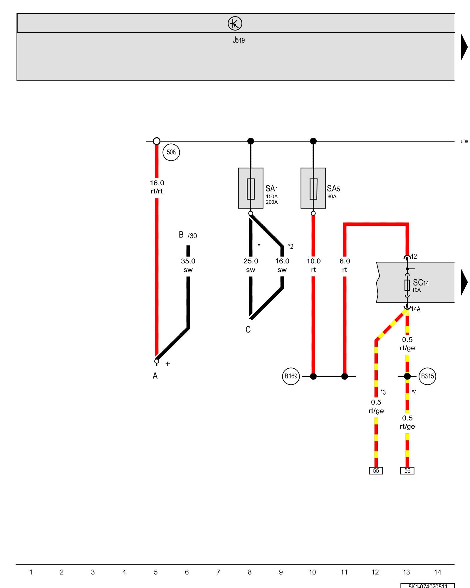 SC14 - Fuse 14 (on fuse panel C) Fuse overview (SA), (SB), (SC)