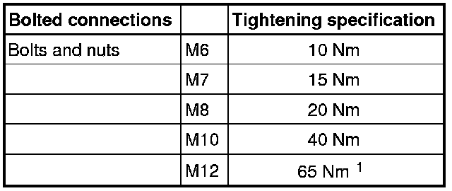 • 1 M12 collar bolt tightening specification: 75 Nm