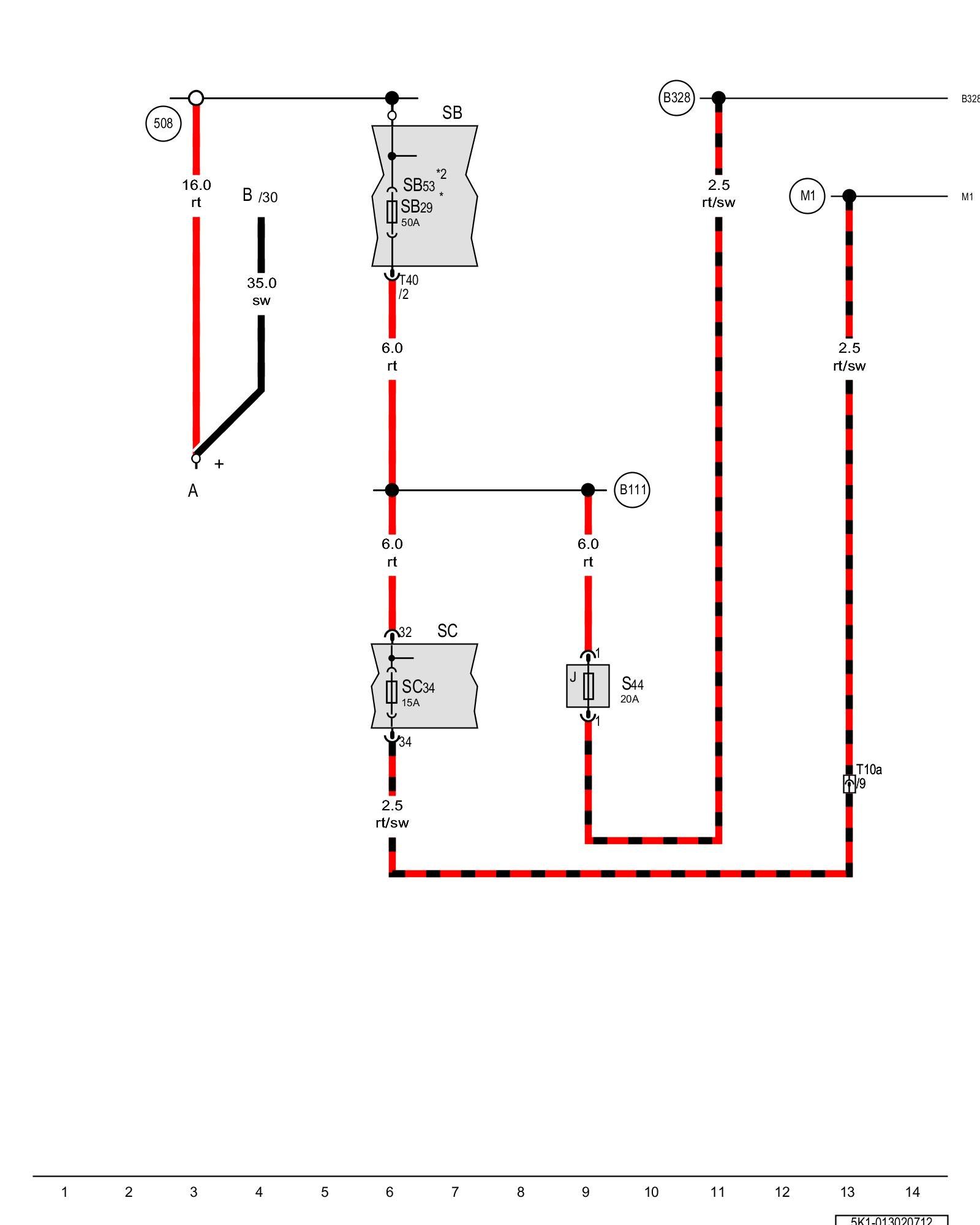 (B328) - Positive connection 14 (30a) (in main wiring harness)