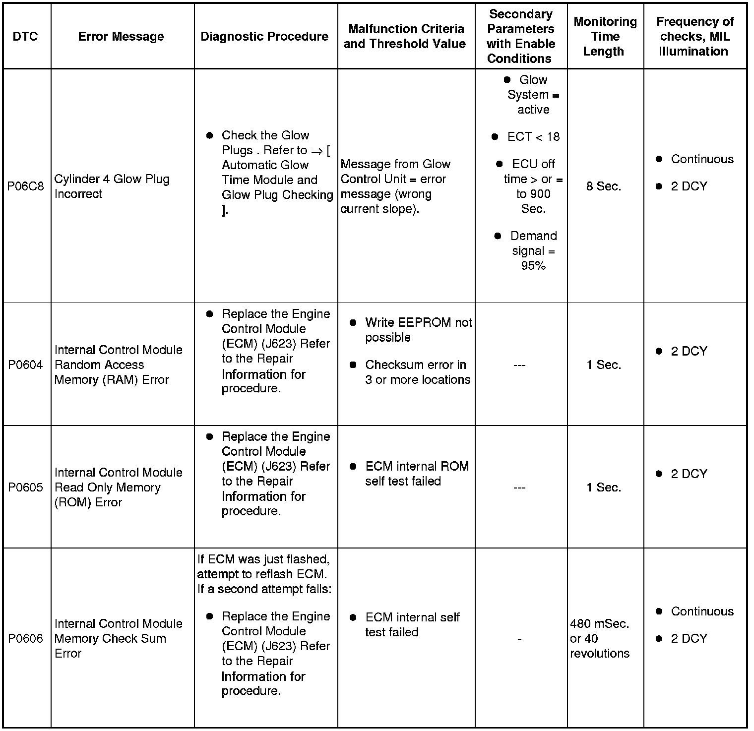 DTC Tables