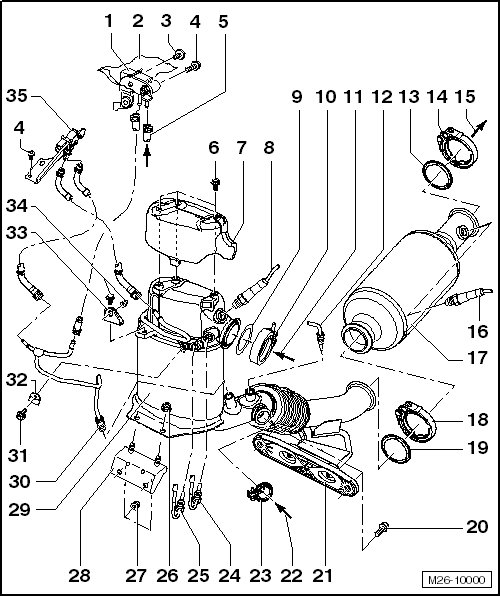 • Removing and Installing, refer to => [ Particulate Filter with NOx Absorption Catalytic Converter ] Service and Repair.