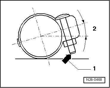 - Install the clamping sleeve so that the bolt end - arrow - does not project beyond the lower edge of the clamping sleeve.