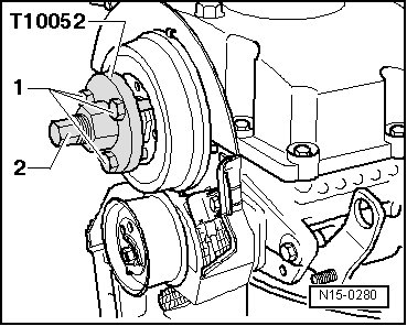 - Tighten the bolt - 1 - for the hub to 100 Nm. To do this, use the camshaft gear counter-holder (T10051).