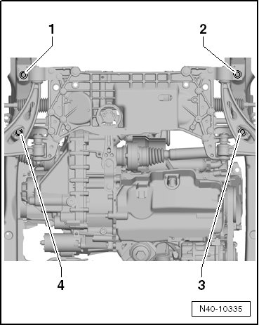 To secure the subframe, the (T10096) must be installed in positions - 1 -, - 2 -, - 3 - and - 4 -, one after the other.
