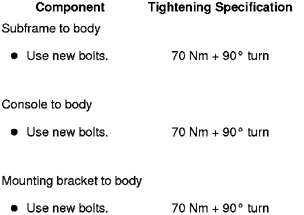 - Replace the bracket bolts one after the other with (T10096) and tighten to 20 Nm.