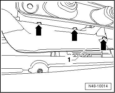 - Place a block of wood - 1 -, for example, between (V.A.G 1383 A) and the subframe.