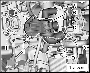 - Remove the coolant hoses from the connections - A, B and D -.