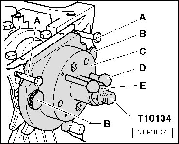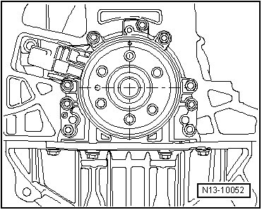 • The assembly tool (T10134) retains the installed position to the crankshaft via a guide pin, which is guided into the bore in the crankshaft.