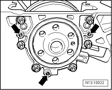 • The sealing flange and sensor wheel are pressed off the crankshaft using three M6 x 35 mm bolts.
