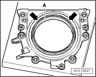 - Press the sealing lip support ring - A - in the - direction of the arrow - until it rests on the level surface.