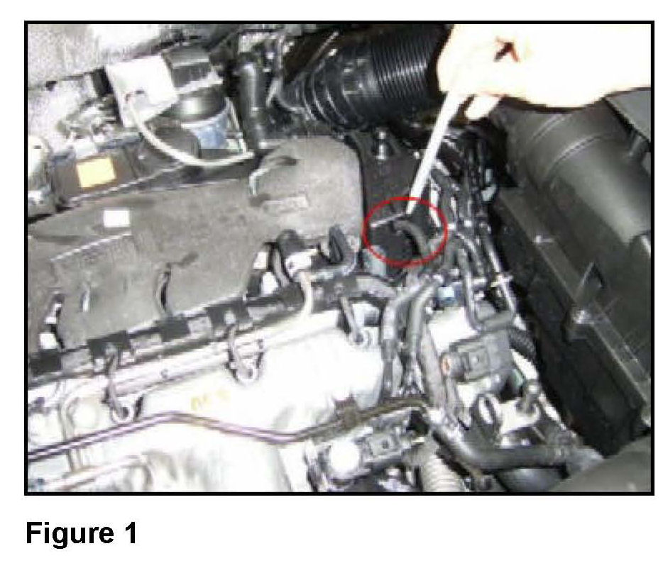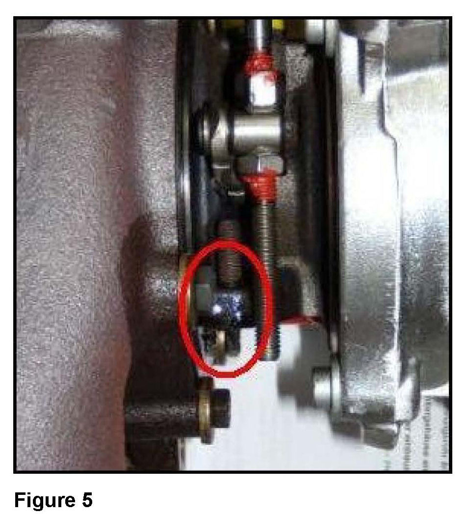 ^ Inspect the turbo charger to see whether the stud with clamp nut broken (Figure 5).