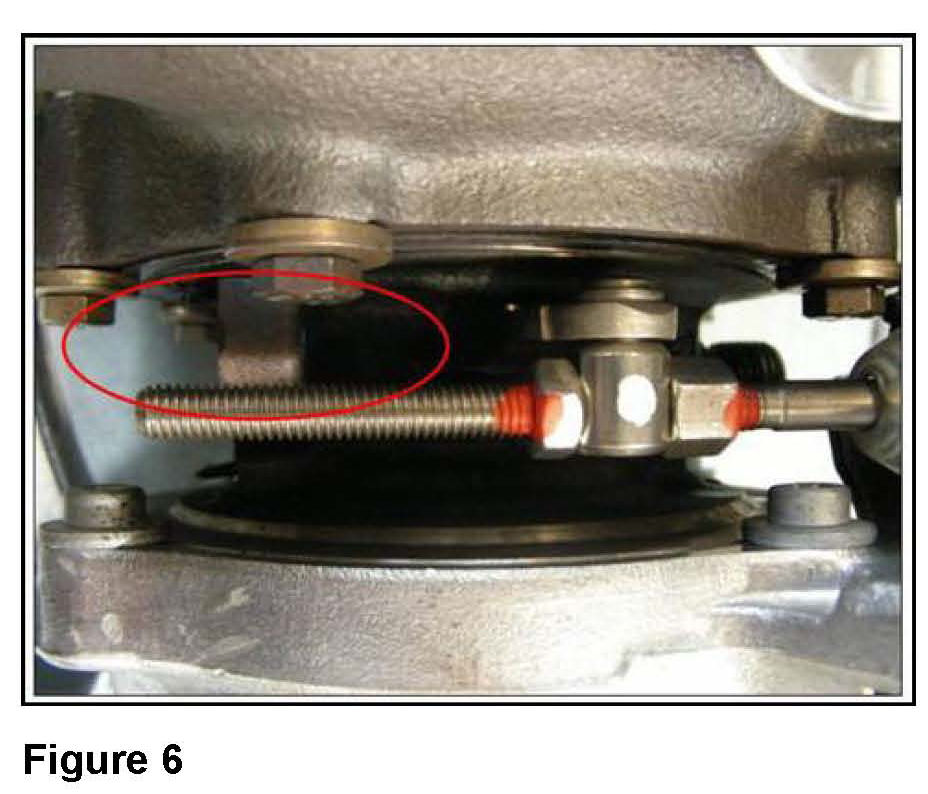 ^ Inspect the turbo charger to see whether the stud with clamp nut is missing (Figure 6).