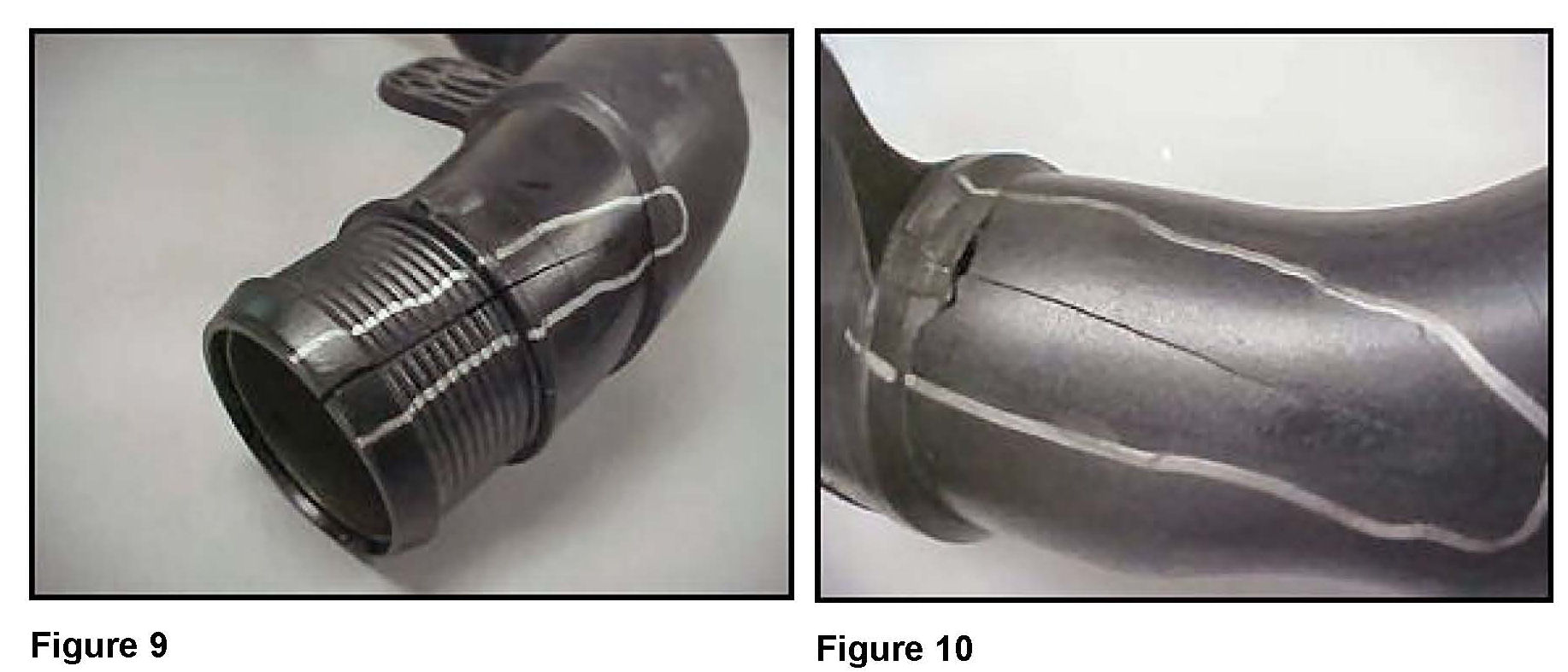 ^ Inspect the plastic boost pipe that runs from the intake side of the turbocharger to the intercooler for cracks or leaks (Figures 9 and 10).