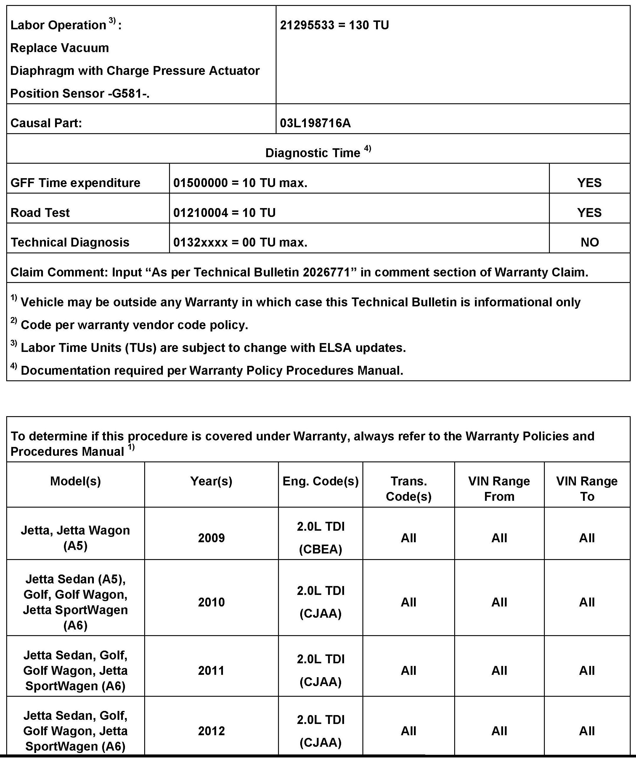 ^ Ensure that any other Bulletins or Required Vehicle Updates for ECM software updates have been performed. The software programming should be charged to the appropriate bulletin.