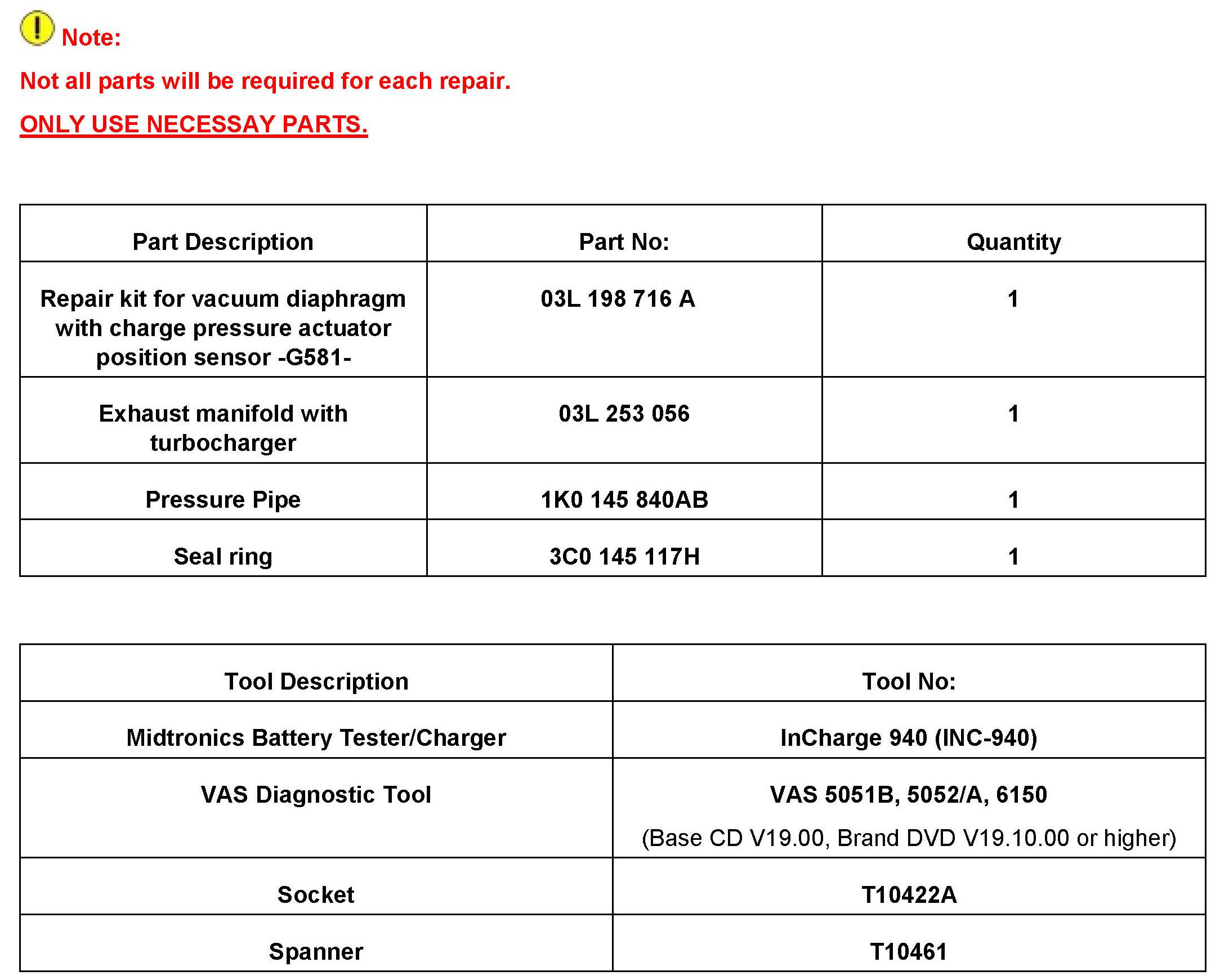 ^ Replace the vacuum diaphragm with charge pressure actuator position sensor-G581- part number 03L198716A according to the repair manual, Group 21 turbo charger, G charger> Removal and installation > Vacuum Diaphragm with Charge Pressure Actuator Position Sensor G581.