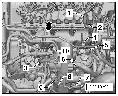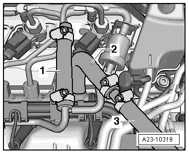 - Disconnect the fuel return line - 1 -.