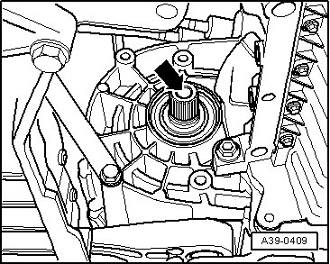 - Remove the stub shaft bolt - arrow - or the flange shaft bolt.
