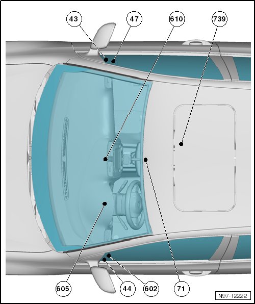 (43) - Ground Connection (on right lower A-pillar) -Arrow A-