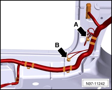 (602) - Ground Connection (in front left footwell) -Arrow B-