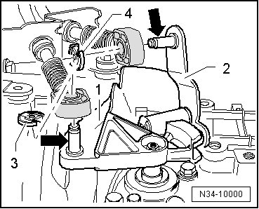 - Attach the shift cable with lock washer - 3 - (metal relay lever) and selector cable with lock washer - 4 -.