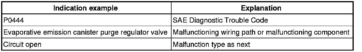 The following table is an example of the DTC information that may be displayed on the scan tool screen: